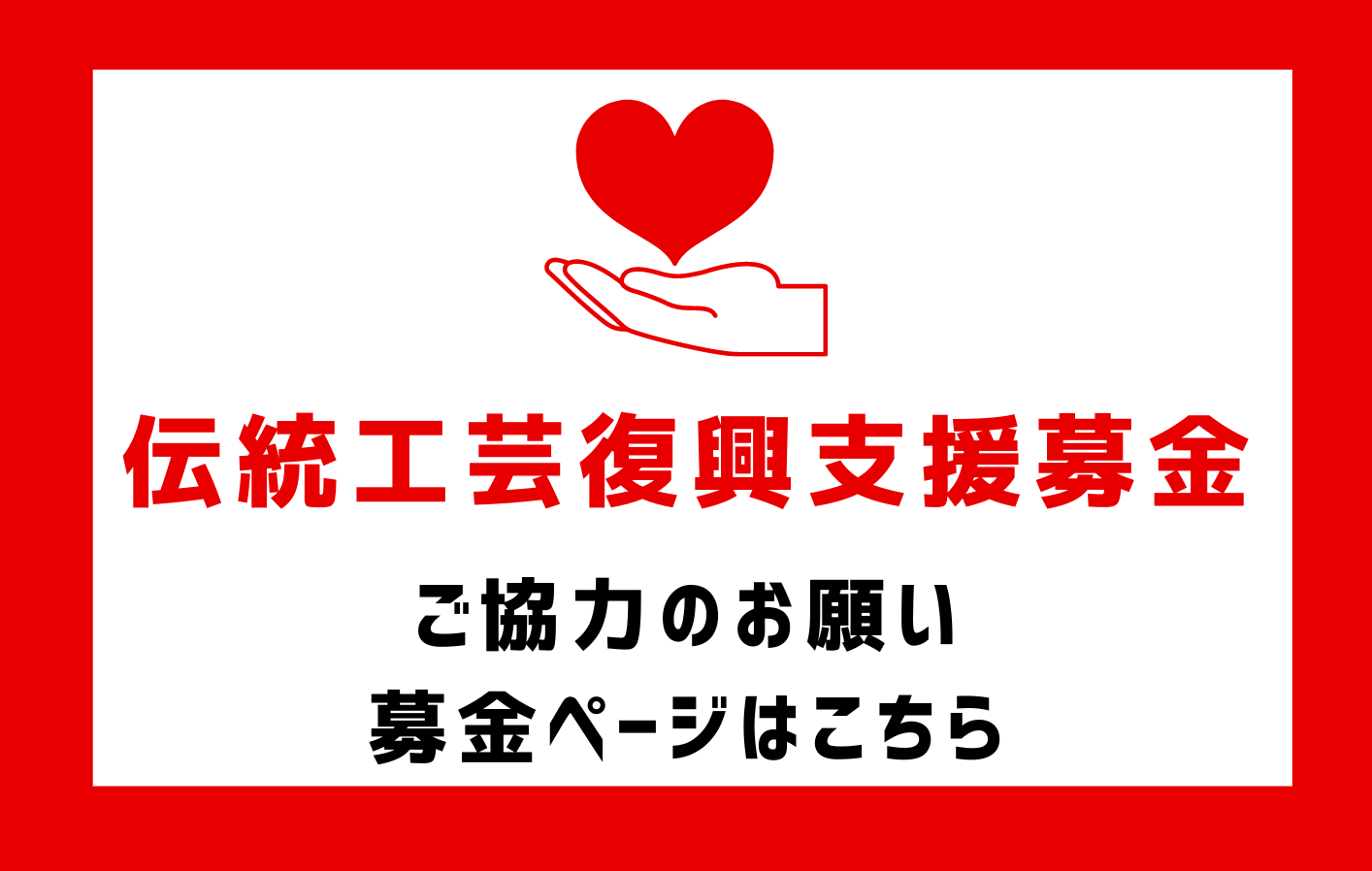 - 被災し失った道具・設備など物品の購入、仕事場の確保、震災による風評被害を払拭する広報マーケティング活動費などの資金援助を。集まった資金は、今回特に被害の多い輪島塗に従事する関係者へ優先して分配致します。